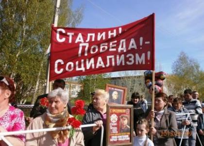 «Перед началом праздничного официального мероприятия, проходившего на центральной площади около администрации города, к нашей колонне подошел начальник полиции Роман Дьяков – и велел убрать один из лозунгов: «Сталин. Победа. Социализм». Сказал, что «лозунг – политический». Кроме него коммунисты и общественники держали еще растяжку «Детям войны – достойную жизнь» и портреты Сталина, Жукова, Рокоссовского.