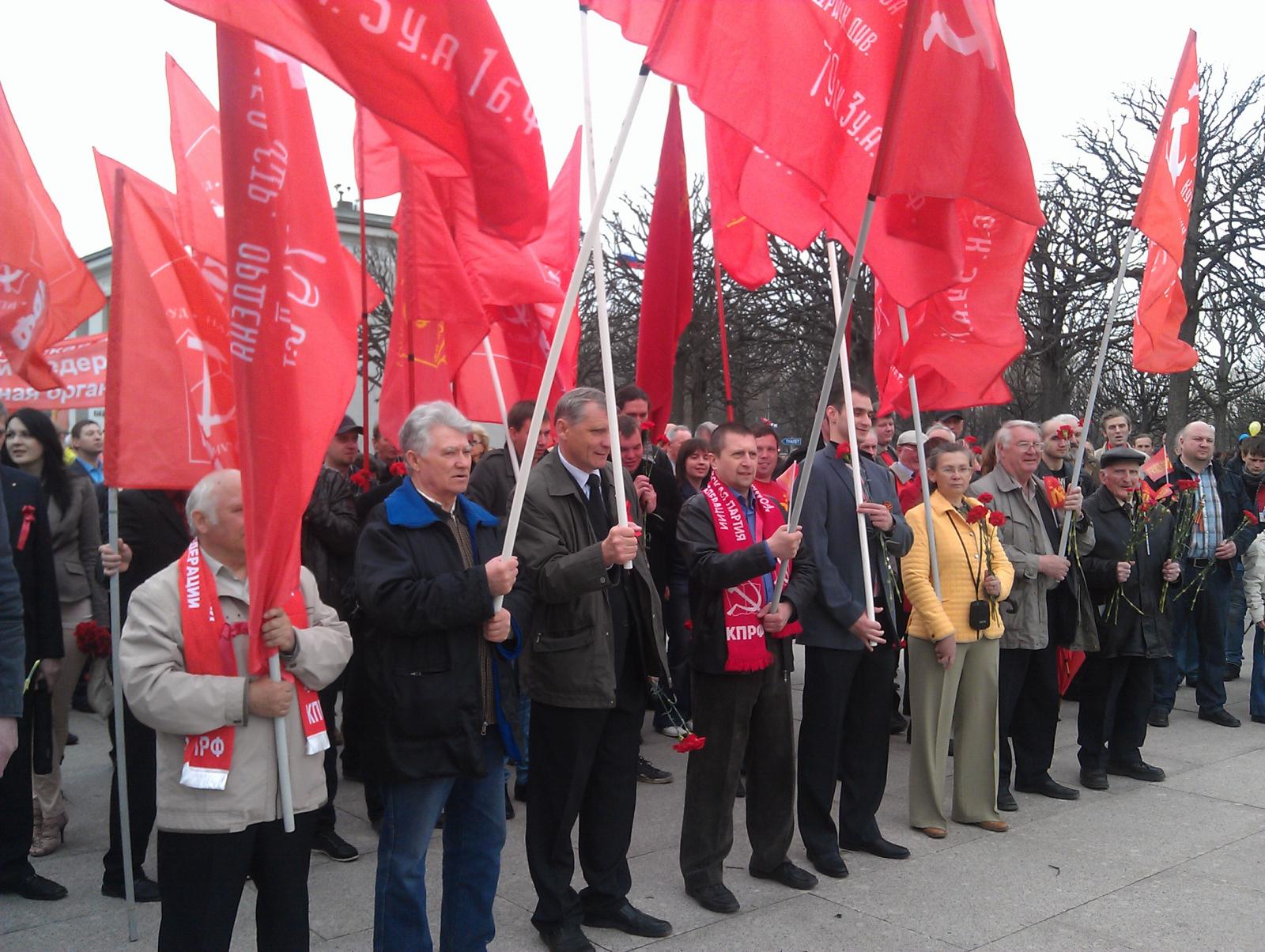 С красными знамёнами Победы и с красными лентами на одежде – так пришли в этот день на Пискарёвское кладбище более пятисот человек – представители Коммунистической партии Российской Федерации, Ленинского комсомола и других общественных объединений.