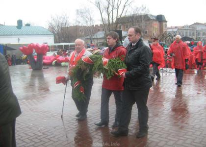 Митинг завершился возложением цветов к постаменту, в котором участвовали руководители города, ветераны и коммунисты.