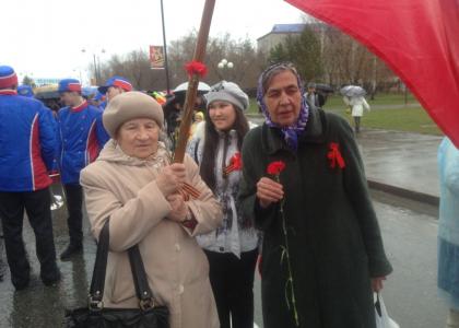 Перед шествием, которое организовала администрация г.Тобольска, состоялся торжественный митинг у обелиска «Вечный Огонь». На митинге присутствовало около 350 человек. Ветераны войны и труженики тыла были усажены на почётные места.