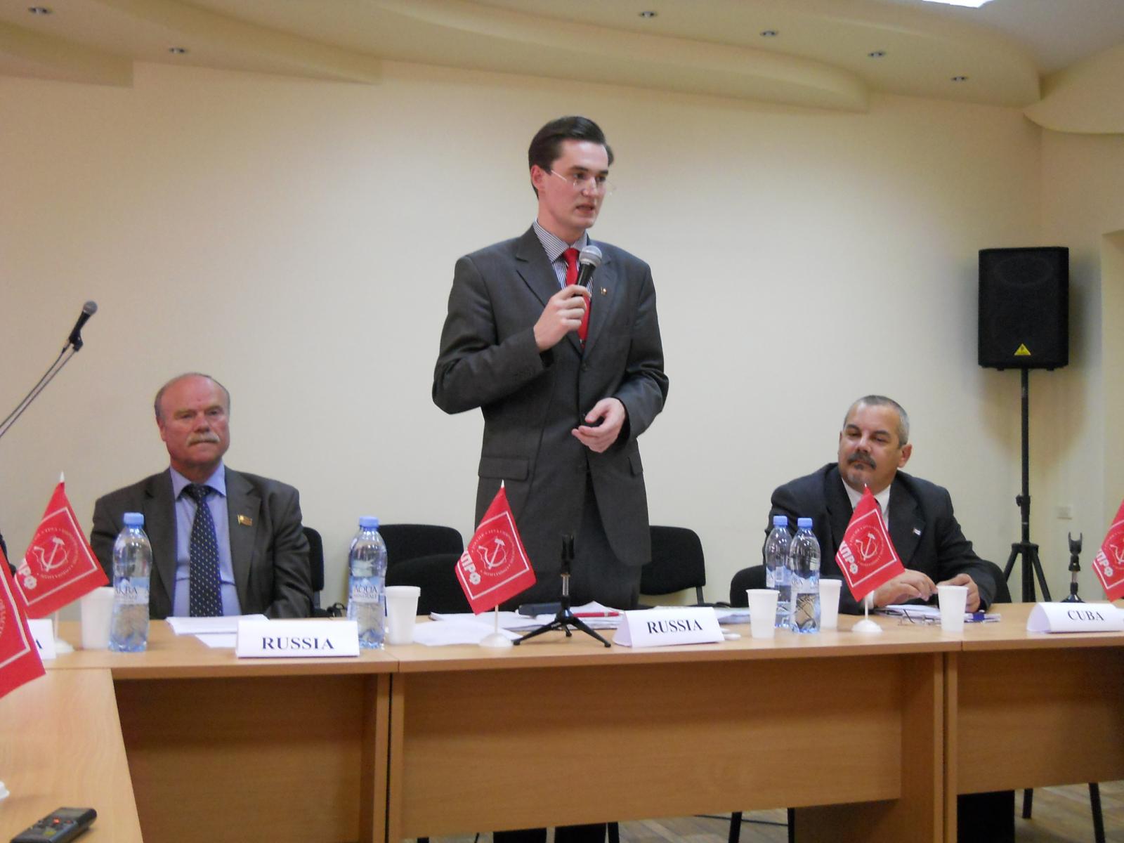 Затем слово для выступления было предоставлено представителям московского комсомола. Молодые люди выступили с докладами, в которых рассматривались проблемы влияния глобализации на современное общество. Восстановление стабильности в странах Латинской Америки - одна из главных задач. По мнению комсомольцев, не смотря на все трудности, переломить господство США у Латинской Америки есть большие шансы.