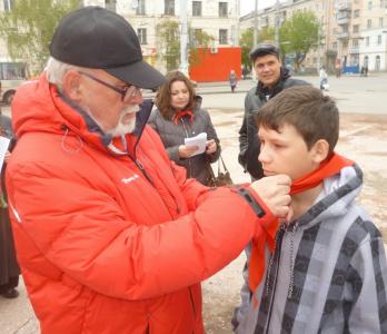 Курганский горком КПРФ проводил здесь акцию: «Мы помним пионерский галстук!». Около красной палатки КПРФ собрались пионеры разных поколений. Всем им вручался на память красный пионерский галстук. Поскольку для сбора были использованы элементы флеш-моба, приглашение велось, в том числе и через социальные сети. Поэтому сюда подходили родители с детьми, бабушки и дедушки с внуками, знакомились с материалами по истории пионерского движения, учили детей повязывать красный галстук, рассматривали фотографии о современной пионерии. К памятнику Коли Мяготину были возложены живые цветы.