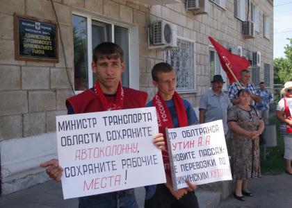 Водители автоколонны, рядовые жители района, а также активисты КПРФ держали растяжки с лозунгами: «Министр транспорта Волгоградской области, сохрани автоколонну! Сохрани рабочие места!», «Шульц, повернись лицом к населению!», «На наши требования – внятный ответ!», «Губернатор обещает много. На деле сокращает коллектив, оставляя людей без работы и средств существования».