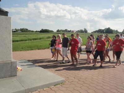 Особой теплотой наполнены встречи на Куликовом поле со старыми друзьями. Новомосковским коммунистам и комсомольцам было приятно в очередной раз увидеть в своём лагере члена обкома КПРФ Ирину Цехмистренко, которая каждый приезжает на фестиваль с семьёй. Кстати, долгие годы она работала с Василием Александровичем Стародубцевым. Вместе они занимались популяризацией победы в битве между Доном и Непрядвой, организовывали в его бытность губернатором первые массовые гуляния на Куликовом поле по случаю Дня воинской славы России. По инициативе губернатора-коммуниста и руководства музея-заповедника в 2000 году, когда праздновалась 620-я годовщина сражения, на первое поле ратной славы России было доставлено Знамя Победы. Такие же флаги развиваются и над лагерем новомосковских коммунистов и комсомольцев – участников ежегодного фестиваля авторской песни.