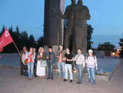Барнаульские коммунисты и комсомольцы присоединились к акции «Свеча памяти», которая традиционно проводится 22 июня во многих городах России, наряду с традиционным возложением цветов к Мемориалу Славы. Ровно в 4 часа утра в этот памятный день молодые активисты КПРФ зажгли свечи возле скульптурной группы "Прощание" на площади Победы и почтили минутой молчания память земляков, погибших в годы Великой Отечественной войны.
