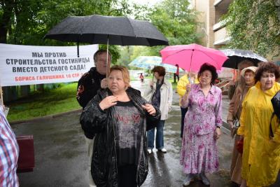 Как рассказали кандидату в Мэры Москвы Ивану Мельникову жители района, до 2004 года в здании по улице Бориса Галушкина, 10 работал детский сад. Потом его по-тихому приватизировали, и пять лет здание стояло заброшенное. Но в 2011 году владелец активизировался: были спилены деревья, а доступ к бывшему детсаду закрыт. Тогда же появилась информация о намерениях владельца построить на этом месте 16-этажное здание с апартаментами, подземным паркингом и дошкольным учреждением. Публичные слушания, как водится, прошли с огромным количеством нарушений: в поддержку апарт-отеля высказались даже умершие!