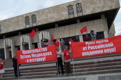 – Мы с вами собрались по поводу так называемой «реформы» академии наук. Но у нас уже и здравоохранение реформировали, и образование – и к чему пришли? Не можем нормально вылечиться, не можем дать детям нормальное образование, детей в школы набирают по блату... То же самое с реформой академии наук, с законопроектом, который спонтанно и быстро, перед отпускным сезоном, пытались провести через Государственную думу. Депутаты Госдумы, коммунисты, которым это не безразлично, ученые всей страны, подняли шум – и в итоге удалось как-то затормозить эту реформу... Нам надо сказать решительное «нет» такой «реформе». Реформа академии наук в таком виде не пройдет!
