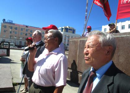 Таковой была «красная нить» митинга трудящихся и общественности г. Якутска, прошедшего 26 июля 2013 года в рамках Всероссийской акции протеста против реформирования Российской Академии наук, в поддержку инициатив КПРФ по отставке Правительства РФ, а также в поддержку законопроекта «О детях войны».