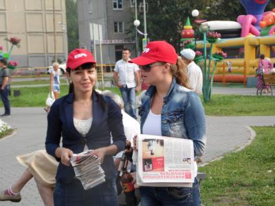 В соседнем округе поралельно шло другое партийное мероприятие – пикет в поддержку КПРФ и кандидата-одномандатника: молодого, но активного коммуниста Алексея Кияшко. За час работы он распространил более тысячи экземпляров листовок безупречного качества и партийной газеты, более 500 календарей. Баннер о реальных делах кандидата-коммуниста Кияшко и о его планах не оставался без внимания прохожих. Говоря о Алексее Кияшко, можно сказать, что это настырный, умный и пробивной парень. Ведь, даже не имея полномочий "слуги народа", он для своего округа умудряется решать проблемы, который подчас решаются годами. Он подключает к их решению депутатов областной Думы Тамару Казанцеву и Владимира Чертищева, а это уже сила.
