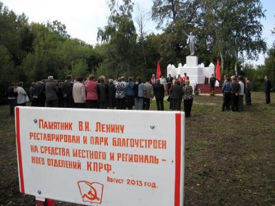 И вот сегодня мы увидели приведенный в порядок прекрасный памятник Ленину, расчищенный парк. В 2005 году по периметру участка, где стоит монумент, были посажены чудесные зеленые елочки. Сейчас после расчистки территории их стало прекрасно видно с центральной улицы села. Невозможно теперь проехать, не заметив памятник, который, безусловно, вновь станет культурным центром села.
