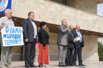 С основным докладом выступил первый секретарь Черкесского горкома КПРФ Сергей Ласков. «Мир вновь у опасной черты, - сказал он. – США нагло и беззастенчиво утверждает свой мировой порядок, разжигает третью мировую войну. Но что может противопоставить ей Россия? Разрушенную промышленность, катастрофу в военно-промышленном комплексе? Слабую, плохо вооруженную армию? В то же время Россия теряет одного за другим союзников, одним из которых является Сирия. Вот уже полтора года на ее территории Запад устраивает провокации, покармливает и снабжает всем необходимым вооруженную оппозицию. Теперь США нацелило на Сирию свои ракеты и самолеты. Надо потребовать от руководства России сделать всё, чтобы предотвратить агрессию США и НАТО против Сирии, остановить кровопролитие».