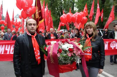 «Победили фашизм – победим капитализм»! Под таким лозунгом праздничная колонна КПРФ, во главе которой были комсомольцы, прошла по проспекту Ленина 17 сентября нынешнего года.