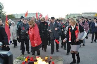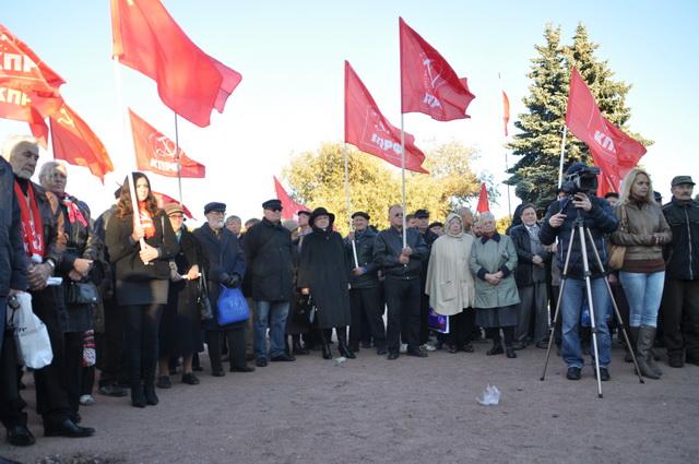 Сотни ленинградцев пришли 3 октября 2013 года на Марсово поле на митинг памяти защитников Дома Советов, организованный Санкт-Петербургским городским отделением КПРФ.