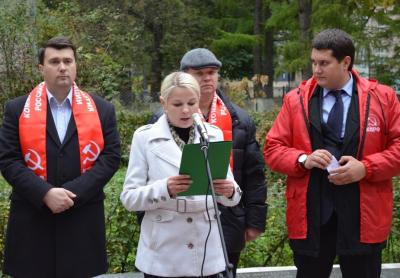 Открыл митинг секретарь обкома партии по протестным действиям, депутат Тульской городской Думы А.А.Лебедев. Напомнив о злодеяния ельцинистов 20-летней давности и о подвиге защитников Советской власти, он предоставил слово выступавшим. Среди них: первый секретарь Пролетарского райкома КПРФ В.Б.Соколов, С.М.Пантелеев, член Молодёжного парламента при областной Думе М.С.Фёдоров. Свои стихи зачитал народный поэт, депутат областной Думы Н.А.Жуков. Резолюцию митинга огласила член бюро обкома КПРФ, первый секретарь Ленинского райкома партии Н.В.Грибанова.
