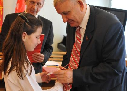 В начале работы Конференции Управляющий Делами ЦК КПРФ, депутат Госдумы А.А.Пономарёв вручил памятные медали ЦК КПРФ «70 лет победы в Орловско-Курской битве» Г.В.Иванову, Н.К.Колосову, В.Н.Маркову, А.Ф.Кавину, В.С.Меметову, С.В.Сайкину. Также А.А.Пономарёв и В.В.Клёнов вручили партийные и комсомольские билеты группе товарищей, пополнивших ряды КПРФ и ЛКСМ РФ. Впервые за двадцать лет на Конференции были вручены удостоверения движения «Тимуровцы», активно разворачивающегося в городе Шуя.
