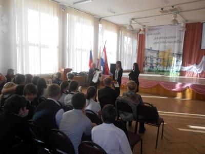 В субботу, 26 октября комсомольцы и коммунисты Самары провели урок мужества для восьмиклассников в школе № 168 Кировского района. Урок был посвящен 95-летию Ленинского комсомола. В ходе него комсомольцы рассказали о Зое Космодемьянской, Александре Матросове, Евгении Никонове и др. Все эти люди были выдающимися комсомольцами, отважными, мужественными патриотами, настоящими героями Советского Союза. Вот с кого должна брать пример современная молодежь!