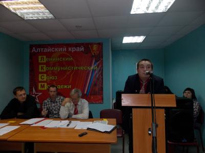 О важности и необходимости соблюдения молодежью своего Устава напомнил первый секретарь Алтайского крайкома КПРФ Сергей Юрченко. Он призвал собравшихся к большей ответственности, активности и дисциплине. Чаще руководствоваться в своей деятельности и взаимоотношениях друг с другом с другом принципами товарищества, солидарности, взаимоуважения. Именно молодежь с ее энергией и креативом способна найти наиболее адекватные времени формы и методы агитационно-пропагандистской работы с населением, выразил уверенность лидер краевой партийной организации. А старшие товарищи готовы ей помогать. «Ваша активность — наша помощь!», - заявил Юрченко.