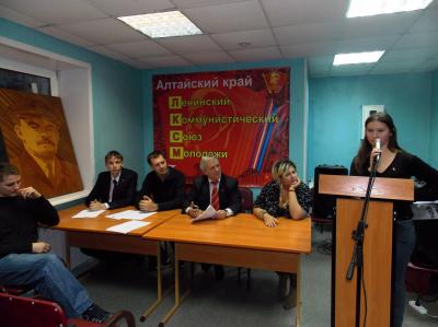 Об истории комсомола, о славных подвигах активистов ЛКСМ прошлого напомнил, выступая, барнаульский активист Антон Арцибашев: «Нам необходимо укрепить вектор работы, направленный на молодое поколение! Биться за справедливость. И начинать надо с себя. Вспомните пример прошлых комсомольцев! Когда слово комсомолец – значило честь, благородство, верность слову и делу! Наш лозунг – быть первыми в рядах наступающих. Наша задача – стать лучшим примером для молодежи, только тогда за нами пойдут люди».