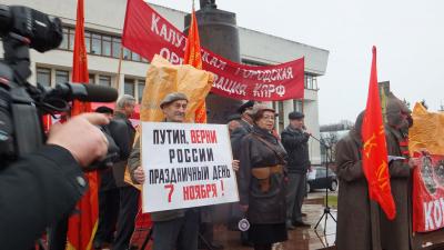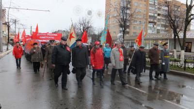На праздничную демонстрацию коммунисты вышли с лозунгами: «Великому Октябрю – СЛАВА!», «Даёшь Россию советскую, социалистическую!», «За державу обидно – вступай в КПРФ», «Система ЖКХ – кормушка казнокрадов», «Возродить родные заводы!», «Путин, верни России праздничный день 7 ноября!», «Дело Ленина будет жить!», «Коммунисты за социализм!»…