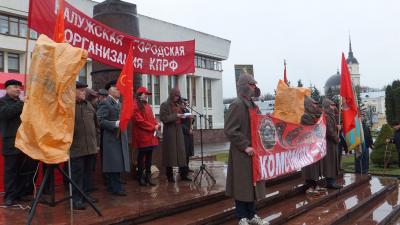В честь 96-летия Великой октябрьской социалистической революции Калужским городским комитетом КПРФ совместно с Ленинским коммунистическим союзом молодежи, Движением в поддержку армии, советом рабочих и служащих города были проведены торжественное шествие и митинг.