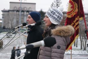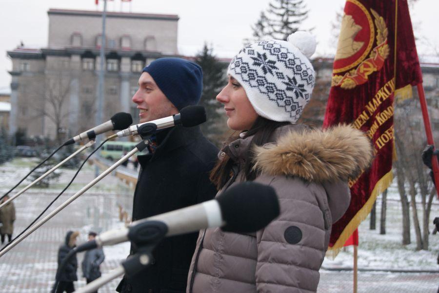 О значении Великого Октября, необходимости продолжать его дело в борьбе за освобождение российского народа от ига капитала говорили с трибуны митинга член ЦК КПРФ, первый секретарь крайкома партии, руководитель фракции КПРФ Законодательного собрания П. П. Медведев, рабочий ЭВРЗ С. В. Белоусов, инструктор орготдела крайкома партии А. В. Пузырёв, депутат Красноярского горсовета В. А. Пястолов, первый секретарь Красноярского горкома комсомола К. А. Лебедева, молодой коммунист Ленинского района Роман Кузнецов.