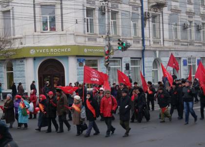 Мы, участники митинга, посвящённого 96-й годовщине Великой Октябрьской социалистической революции, чтим память героев-революционеров, ценим завоевания социализма и дорожим идеалами социальной справедливости.