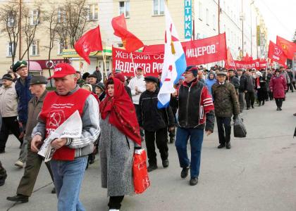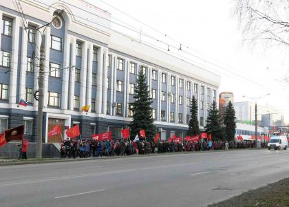 В Новочебоксарске праздничная колонна КПРФ с флагами и транспарантами прошла по главной улице города. На площади Победы состоялся митинг.