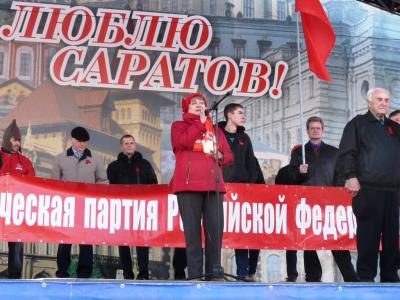 Перед манифестантами с яркой и запоминающейся речью выступила первый секретарь Саратовского обкома КПРФ, депутат Госдумы РФ Ольга Николаевна Алимова. Так же на митинге выступили депутат-коммунист городской Думы Д.В. Шумихин, секретари райкомов КПРФ Д.В. Сорокин, Н.Н. Бондаренко, первый секретарь обкома ЛКСМ Д.С. Юров, представители ветеранов, молодёжи и студенчества.