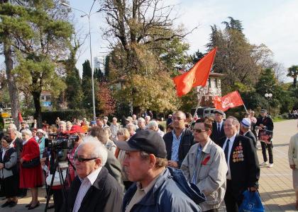 7 ноября, несмотря на рабочий день, на площади у памятника В.И. Ленину собралось около 120-150 человек для участия в митинге, организованным Сочинским городским комитетом КПРФ.