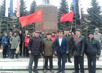 В Новомосковске в Аллее Славы перед памятником В.И.Ленину состоялся митинг, в котором приняли участие не менее 300 человек. Особое внимание его участников было приковано к коммунисту А.С.Трусову, ветерану советско-финской и Великой Отечественной войн, которому 4 ноября исполнилось 99 лет. Тем не менее, он прибывает в завидной физической форме, на митинг пришёл сам, пешком и выступил перед собравшимися. В частности, он рассказал, как строили химкомбинат, каких усилий это стоило, какой был энтузиазм у тогдашних комсомольцев.