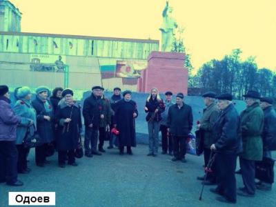 Одоев. В центре посёлка у памятника В.И.Ленину под руководством первого секретаря райкома, депутата поселкового Собрания В.М.Винокуровой состоялся праздничный митинг, после которого в помещении райкома прошло вручение медалей ЦК КПРФ «95 лет ВЛКСМ».