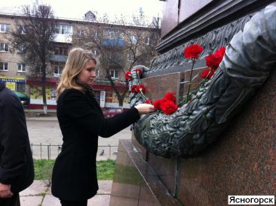 Ясногорск. Здесь в 11.00 состоялось возложение цветов к памятнику В.И. Ленина, организатором которого выступили первый секретарь райкома партии А.В.Бирюков и второй секретарь райкома партии М.С.Дронов. После возложения М.С.Дронов с группой молодых коммунистов принял участие в праздничных мероприятиях в Туле.