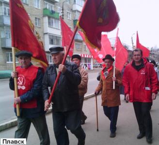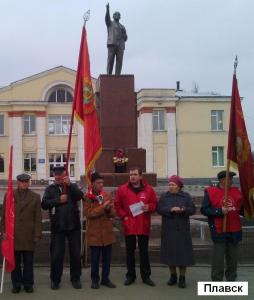 Плавск. Под руководством первого секретаря райкома КПРФ М.М.Батяйкина в 11.00 здесь состоялось шествие и митинг, в котором приняли участие около 50 коммунистов и сторонников партии. На мероприятии выступил первый секретарь райкома, ряд других товарищей, после чего состоялось возложение цветов к памятнику В.И.Ленину.