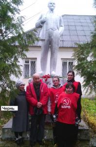 Чернь. Под руководством секретаря Чернского райкома КПРФ И.В.Здиорук состоялось возложение цветов к памятнику Героям, погибшим в годы Великой Отечественной войны и памятнику В.И.Ленину в с.Тургенево. В мероприятии приняли участие, как молодые коммунисты, так и ветераны партии, в частности, коммунист с 70-летним партийным стажем 91-летний Б.Н.Зажицкий.