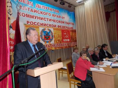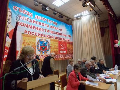 Съезд депутатов фракций КПРФ законодательных органов всего края провели коммунисты в Барнауле 1 декабря. В нем приняли участие более 200 депутатов, входящих в состав фракций КПРФ краевого парламента, городских и районных дум и советов, депутаты сельсоветов, а также главы сельских администраций, помощники депутатов. А также депутаты Госдумы от Алтайского края.