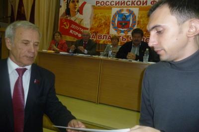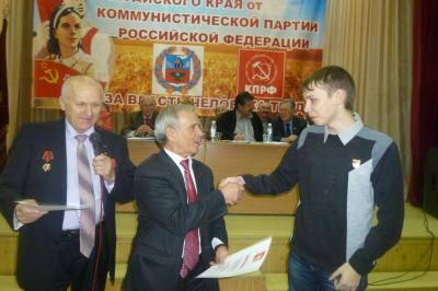 На краевом съезде депутатов-коммунистов, проходившем в Барнауле 1 декабря, вручены дипломы и премии победителям конкурса «КПРФ — словом, кистью и пером». На этот раз конкурс был посвящен 96-ой годовщине Великого Октября.