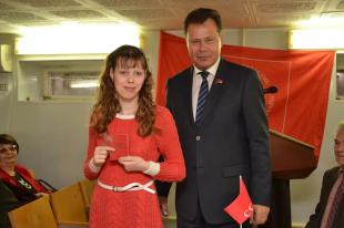 По традиции перед началом Пленума состоялось вручение партийных билетов недавно вступившим в партию коммунистам Ленинского, Кировского, Красноярского и Трусовского районов. В числе принятых в ряды КПРФ преподаватели, студенты вузов и представители крестьянства.
