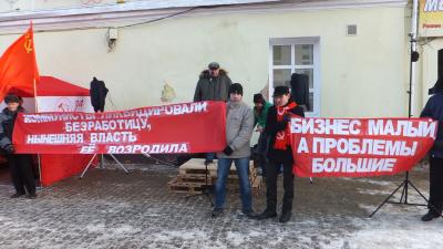 Коммунисты вышли на митинг с лозунгами: «Бизнес малый, а проблемы большие», «Коммунисты ликвидировали безработицу, нынешняя власть её возродила». На улице Театральной была установлена красная агитационная палатка КПРФ, на которой были вывешены плакаты для калужан, высказать свои предложения власти по ликвидации безработицы, сохранению рабочих мест, возрождению и поддержке отечественных предприятий, сельского хозяйства. Также сбор предложений коммунисты и комсомольцы вели на улицах города. Вот предложения, высказанные калужанами: