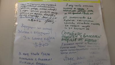 «Хотите сделать Калугу европейским городом? Сделайте европейскими пенсии и зарплаты. Дороги в Калуге в некоторых дворах хуже, чем в деревнях. С людьми надо обсуждать жизненно важные вопросы в т.ч. и о рынке. Вы у людей спросили, что нам лучше и чего мы хотим? Меньше всего - торговых центров. Скоро куда ни глянь – торговый центр и потом в СМИ пишете «по просьбе народа». Обман кругом, всё шито белыми нитками и люди всё это понимают».