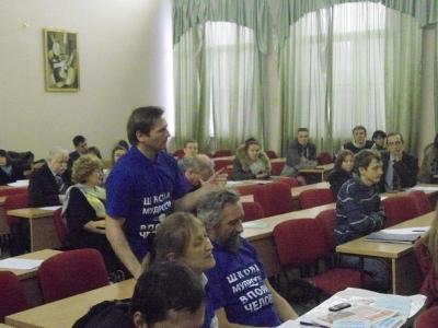 Приняли участие в конференции и школьные учителя – Елена Остапенко («Трикстерская природа Интернета») и Юрий Раддац («К вопросу воспитания гражданственности и патриотизма в современной школе»). Юрий является одним из руководителей городского отделения общественного движения «Образование для всех».