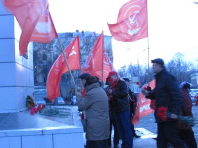 После окончания акции протеста коммунисты возложили цветы памятнику Владимиру Ильичу Ленину.