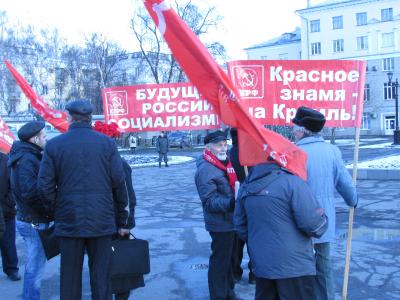 Коммунисты Новокузнецка под руководством первого секретаря ГК КПРФ Леонида Буракова, провели пикет за отставку Правительства Медведева.