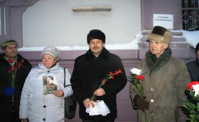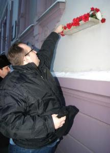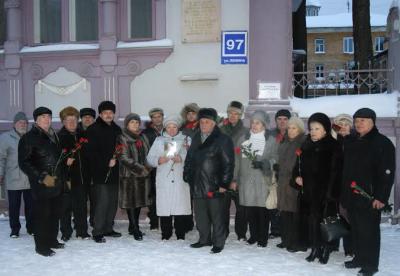 Затем присутствующие возложили цветы к мемориальной доске, размещенной на доме.