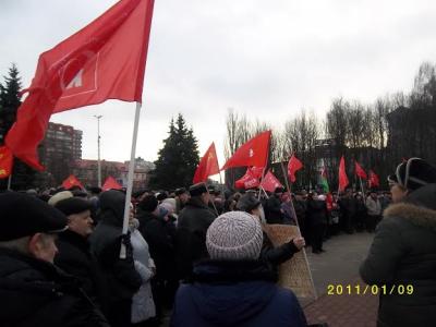 21 декабря в Калининграде прошел митинг КПРФ, посвященный проблемам ЖКХ. Накануне митинга ситуация в городе сильно накалилась из-за отзыва лицензии у «Инвестбанка», вкладчиками которого были 40 тысяч калининградцев. Разъяренные вкладчики даже выбили двери офиса банка. При этом особенно пострадал имидж губернатора Цуканова, который ранее обещал, что с «Инвестбанком» ничего не случится. Поэтому в отношении митинга власти явно решили подстраховаться.
