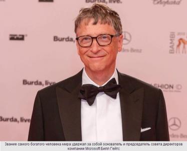 Звание самого богатого человека мира удержал за собой основатель и председатель совета директоров компании Microsoft Билл Гейтс, вернувший себе этот "титул" в мае прошлого года. Ему удалось увеличить свой капитал на 15,8 миллиарда долларов - до 78,5 миллиарда долларов. Этому способствовало, в частности, то, что акции корпорации за год выросли в цене более чем на 30%. Увеличилась стоимость и многих других принадлежащих Гейтсу активов, отмечает ИТАР-ТАСС.