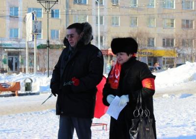 Митинг открыла первый секретарь Магаданского городского Комитета КПРФ Эльмира Николаевна Карпенко. Затем слово было передано секретарю областного Комитета по оргпартработе Александру Сергеевичу Шишкину. В своих кратких выступлениях они сказали о том, что народы мира все больше убеждаются в необходимости построения общества социальной справедливости.