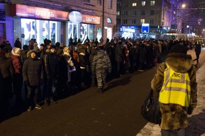 И вот в то время, как президент играет на рояле, тысячи москвичей вынуждены в такой холод в час пик, когда все возвращаются с работы, искать какие-то обходные наземные пути. Автобусов, естественно, не хватает, таксисты взвинтили цены – эта ситуация стала уже привычной из-за частых коллапсов московского метро.