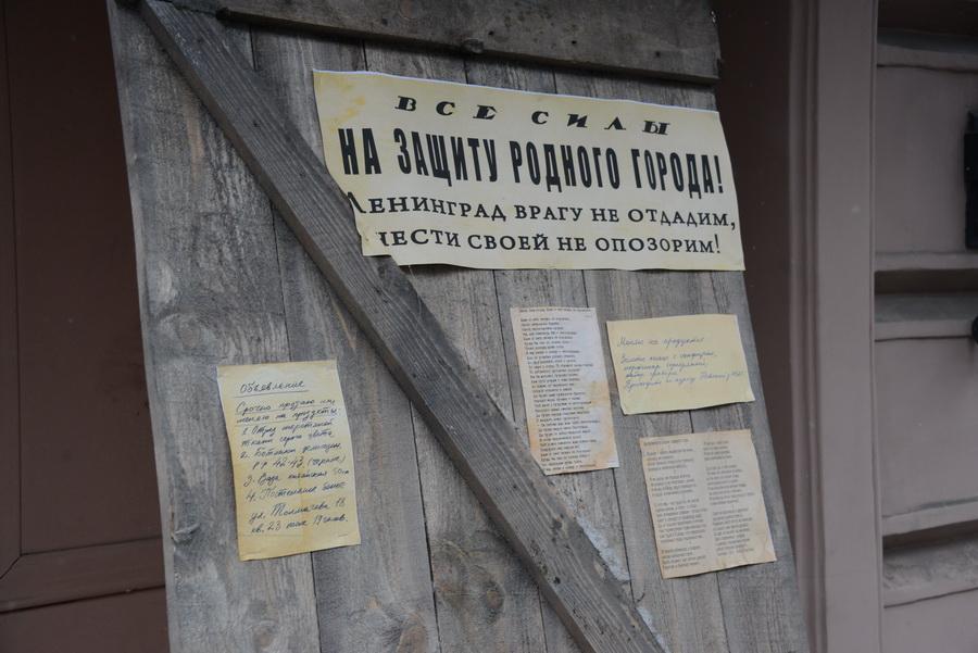 Музей памяти «Улица жизни» - это музей под открытым небом. На Итальянской улице воссоздан уголок блокадного Ленинграда. Окна, закрытые деревянными щитами и мешками с песком. Плакаты времен Великой Отечественной войны. Театральные афиши. Расклеенные объявления об обмене старинной мебели, ценных вещей, драгоценностей на продукты питания. Зенитное орудие. Старинные трамвай, троллейбус и автомобили. И другие интересные экспонаты и документы из той далекой эпохи. Экскурсоводы были в форме советских воинов.