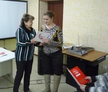 Перед началом мероприятия Ольга Николаевна вручила молодым коммунистам партбилеты, а заслуженным ветеранам партии памятные подарки.