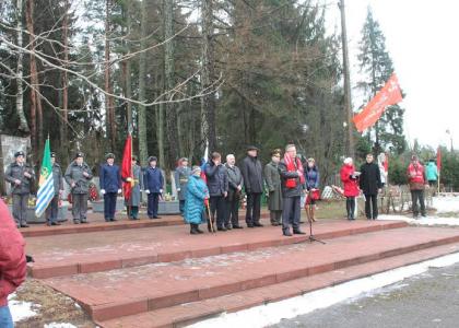 Александр Рогов кратко обозначил победный путь Советской армии в боях за п. Плюсса, борьбу партизан в плюсских лесах, которые с начала оккупации с лета 1941 года пустили под откос десятки воинских эшелонов, громили комендатуры и полицейские участки. «Низкий поклон всем участникам героической борьбы с немецко-фашистскими захватчиками. Советский воин Победы стал символом свободы и независимости. 27 января делегация псковских коммунистов участвовала в мероприятиях, посвященных прорыву блокады Ленинграда. Нас встретил город-герой, расцвеченный государственными флагами и копией Знамени Победы. Сегодня с чувством гордости за псковскую землю – родину Знамени Победы, родившегося в сражениях за станцию Идрица в Себежском районе, – вручаю копию Знамени Победы Главе Плюсского района Анатолию Соловьеву», - сказал Александр Рогов.